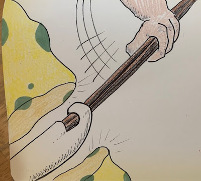 I drew a robot gyrating wildly to avoid something (an energy blast perhaps? A line drive at a baseball game?). I wanted motion, and I think I pulled it off.